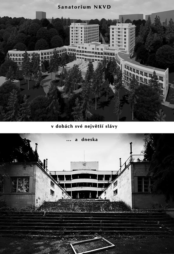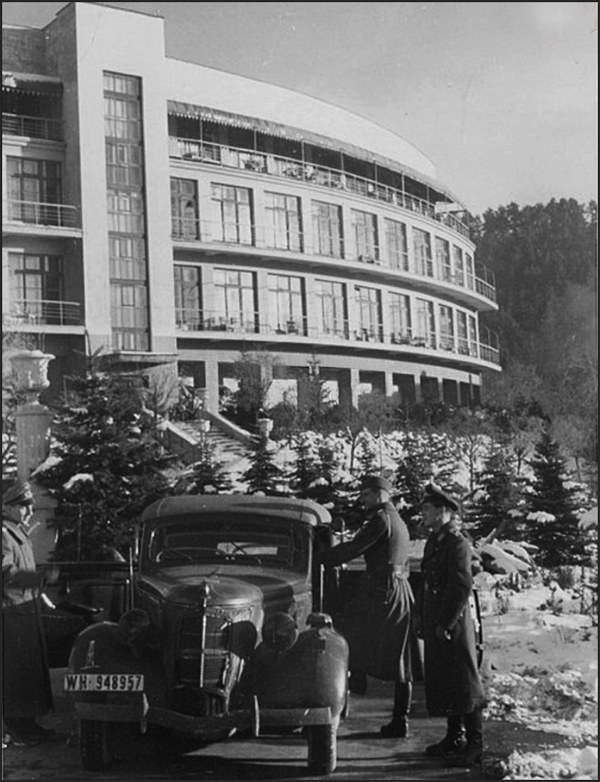 Pro zajímavost zde uvedu ukázku jak vypadalo třeba výše zmíněné Sanatorium NKVD během okupačních a po odchodu Wehrmachtu … a jak vypadá dnes: