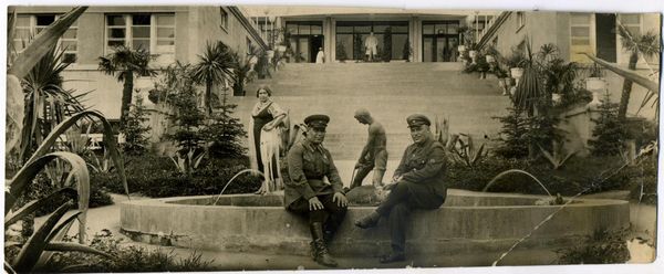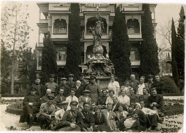 Rekreanti z řad „čekistů-úderníků“, důstojníků NKVD a dozorců z GULAGu, před sanatoriem NKVD „Krasnyje kamni“ - Kislovodsk