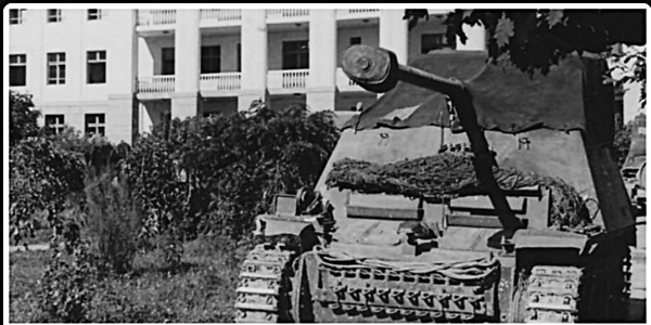 Německý stíhač tanků Marder II zaparkovaný na nádvoří sanatoria Vsjekopromsvetkass