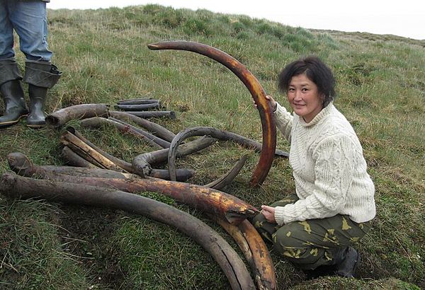 Zde je třeba říci, že pozůstatků mamutů se tu sice našlo méně než v Jakutsku, ale i tak dost na to, aby vyřezávání z jejich kostí zde dalo vzniknout celému oboru lidového řemesla, profesi kostireza. Jednotlivých částí mamutích koster se tu vyskytuje tolik, že jejich nekompletní kostry tu prostě nemají nějakou zvláštní cenu. Mamutí kly se mimochodem, zvláště kvůli zavedení mezinárodních restrikcí při obchodu se slonovinou[5], často pašuji do zahraničí, kde mamutovina nahrazuje při výrobě ozdobných předmětů klasickou slonovinu.