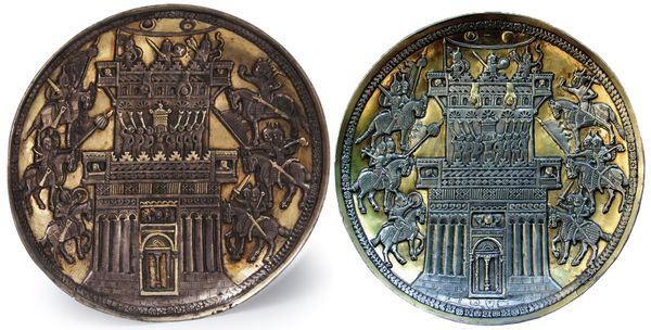stříbrná mísa s vyobrazením íránského šáha Jazdgarda I.