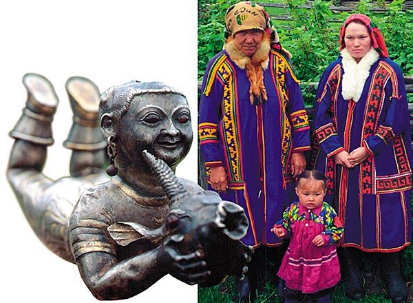 Během výzkumu kultovního náčiní a votivních předmětů syňských Chantů zase A. V. Baulo objevil další unikát: stříbrný rhyton (antický typ poháru odvozeného od „picího rohu“) v podobě figurky akrobatky, vyrobený ve Střední Asii na přelomu 8. a 9. století.