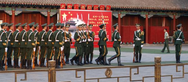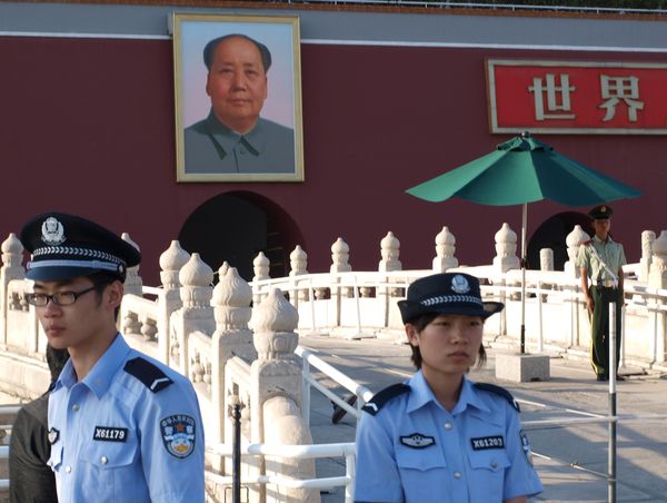 Jestliže si západní cizinec tváří v tvář zmíněným „robokopům“ v zelených uniformách uvědomuje podivnou „jinakost“ této země a pociťuje jistý neurčitý respekt, pak pro místní lidi jsou tato kontrolní policejní stanoviště němou manifestací síly režimu a jejich bezmoci. Jakousi každodenní připomínkou někdejšího masakru na náměstí Tchien-an-men během posledního lidového povstání a varování režimu, že je jakýkoliv vzdor i dnes připraven potlačit stejně brutálně a nelítostně. Cizinec si zároveň také neuvědomuje, že kromě ozbrojenců v uniformách ulicemi čínských měst bloumají tisíce nenápadných chlapíků v tričku a kšiltovce, kteří kdykoliv během pár minut vyběhnou z davu, aby zpacifikovali a odvezli případného narušitele pořádku. Ti mají za sebou další tisíce operátorů sledujících v zázemí na monitorech nepřetržitě cvrkot na ulicích, aby na inkriminované místo nasměrovali zásahový tým. A málokdo, kdo nezažil aspoň hrátky komunistické StB anebo nečetl Orwela, má vůbec představu o skrytém bezpečnostním systému, jehož pracovníci nepřetržitě sledují a analyzují informační toky v kyberprostoru i veřejné kamerové systémy, mediální kanály, elektronickou komunikaci občanů i sociální sítě, které jsou navíc průběžně cenzurované pomocí špičkových algoritmů blokujících materiály a zprávy obsahujících zakázané či podezřelé výrazy