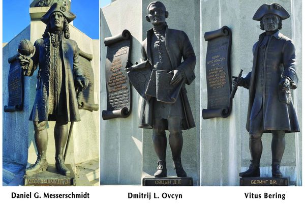 Pomník tvoří mohutný 17 metrů vysoký bílý sloup, jemuž vévodí postava anděla. Piedestal obklopují čtyři bronzové sochy významných objevitelů a pokořitelů Sibiře, hledící do čtyř světových stran: dánského mořeplavce ve službách ruské admirality Vituse Beringa (1681-1741); jeho spolupracovníka, ruského hydrografa a námořního důstojníka Dmitrije Ovcyna (1704-1757); historika, kartografa a cestovatele Gerharda Friedricha Müllera (1705-1783) a německého přírodovědce Daniela Gottlieba Messerschmidta (1685-1735).