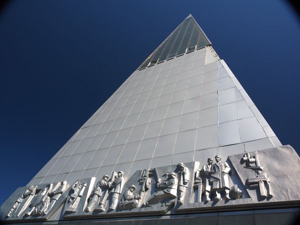 Na vrcholu kopce se tyčí věž ze skla a oceli ve tvaru trojbokého jehlanu. Jde o památník „Objevitelům Jugorské země“. Kovové basreliéfy symbolizují na každé straně jehlanu jednu zásadní éru historie Jugry: starověkou Jugru, dobu dobytí Sibiře Jermakem a éru ropy a plynu, sovětského režimu a industrializace.