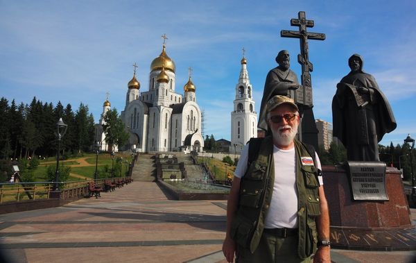 Po obhlídce místních pamětihodností si dáváme oddych v parčíku poblíž Aleje hrdinů a válečného památníku, kde mám spicha s mým zdejším kamarádem Vladimírem, u něhož budu bydlet.