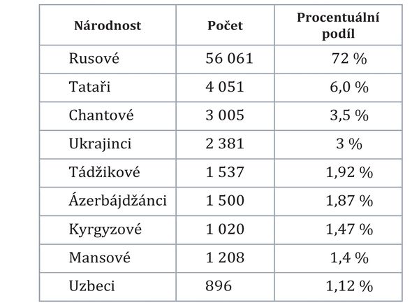 Oficiální údaje o národnostním složení obyvatel Chanty-Mansijsku: