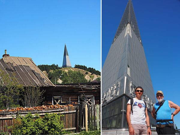 Poté, co jsme se spustili z kopce zpět na náměstíčko u jeho úpatí, zastavujeme se u dalšího památníku věnovaného kolonizaci Sibiře, nazvaného „Brána Sibiře“, nacházejícího se pár metrů od schodiště.