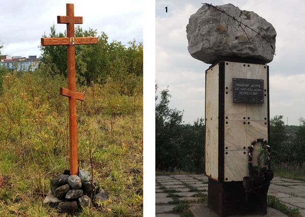 Jak tak sleduji postupný vzestup popularity Stalina[12] a morbidní nostalgie za sovětskou vlastí v ruské společnosti a s tím spojené smrákání i nad samotným sdružením Memorial, jehož neustálé „vrtání se v minulosti“ s nelibostí vnímají ruské úřady i „vlastenci“, mám obavy, že naopak co nevidět potichu zmizí i ten skromný pomník obětem stalinských persekucí, který Memorial zbudoval v r. 1988 na Naběrežné ulici (obr. 1) nebo kříž na památku polským obětem mezi ruinami Rudniku[13].