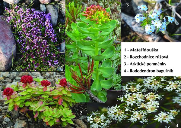 Běžně zde člověk narazí na řadu květin známých z naší přírody, resp. jejich příbuzné odnože. Mám na mysli třeba arktické kopretiny, děhel, hořec, jestřábník, kakost, plamének, plavuň, rozchodnice[1], rdesno, rozrazil, řeřišnici, šťovík, třezalku, vachtu, violku; různé pryskyřníky anebo lomikameny, které u nás náleží k oblíbeným skalničkám[2] a ke zdejším skalnatým úbočím neodmyslitelně patří. Však český název „lomikámen“ (odvozený od latinského „saxifraga“, což znamená doslova „skálolamač“) ilustruje skutečnost, že osídluje skalnatá stanoviště, která rozrušuje svými kořeny.