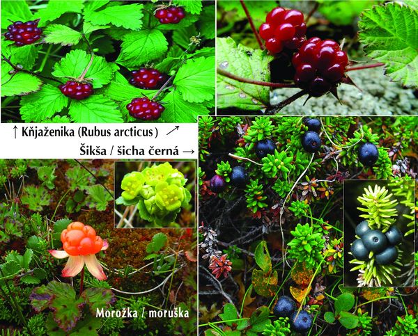 Poslední jmenované plody, barvou i tvarem podobné našim borůvkám (které se tedy správně česky nazývají šicha černá[6]), zde rostou na zhruba deseticentimetrových keříčcích podobných vřesovci na rašelinných půdách a vlhkých skalách. Ačkoliv někteří autoři tvrdí, že konzumace plodů šikši škodí zdraví (kvůli tomu, že obsahuje grayanotoxin, který se nachází třeba v rododendronech), na Sibiři ani na dálném Severu jsem se s takovým názorem nesetkal.