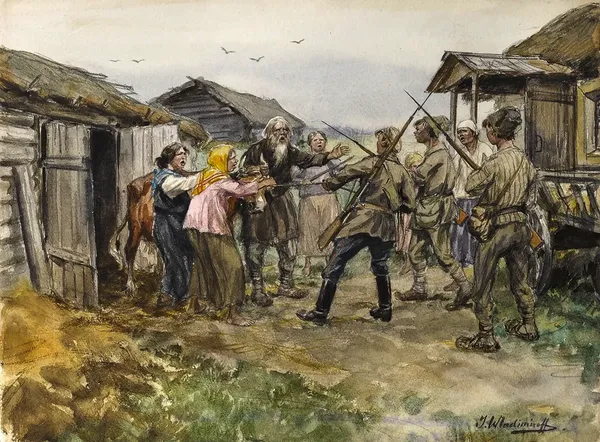 Ivan Aleksejevič Vladimirov: Konfiskace rolníkovy jediné krávy (1919)